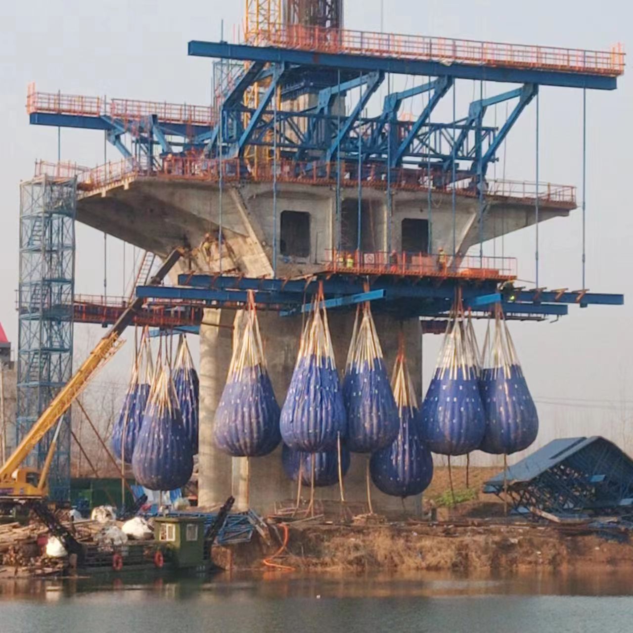 由中鐵十局在安徽阜陽結合當地地理環(huán)境,根據標段內沿線水系發(fā)育,采用水載掛籃預壓方法,利用附近豐富的水資源,省去了傳統預壓所必須的開挖、運輸、填注等工序,縮短了工期。預壓水袋全部采用pvc材料,抗高溫耐摩擦,可循環(huán)使用。水囊(袋)可折疊性好,運輸、拆除方便,現場操作簡單,不需要大量機械、人員配合作業(yè),能快速充水完成對橋梁預壓。后期拆除便捷、速度快亦不會造成較大破壞,水為可再生資源,經處理后卸載排放至河流,避免對水體造成污染,可循環(huán)利用水資源。