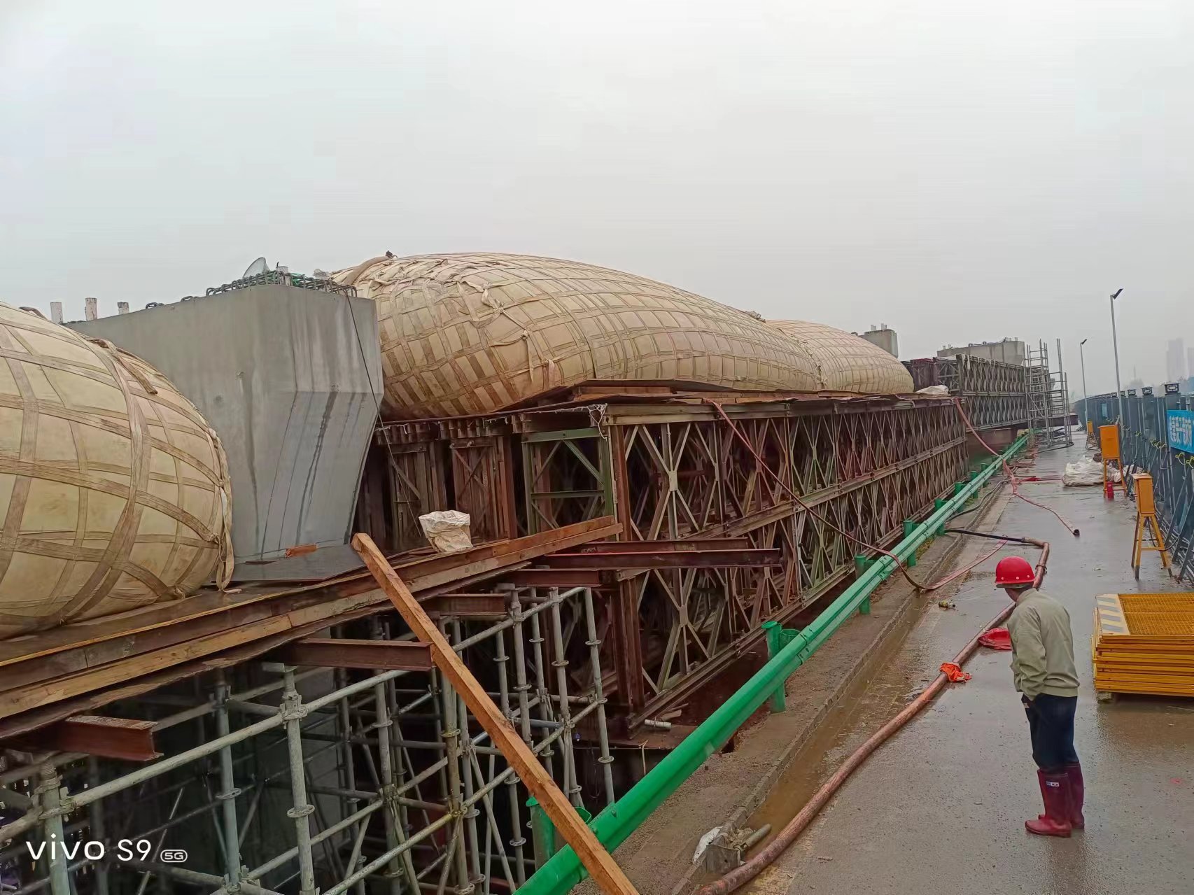 左岸大道(江北快速路段)勝海大道立交水袋預(yù)壓現(xiàn)場(chǎng)