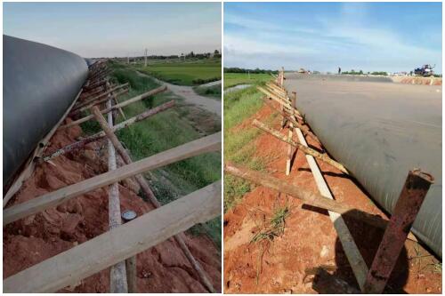 東雷高速公路水載預(yù)壓,是繼蘇埃通道之后的又一高難度路基堆載預(yù)壓,它的難度主要體現(xiàn)在注水的高度要達(dá)到2.5米、卸載的坡度達(dá)到5%,速安人憑借豐富的經(jīng)驗和嫻熟的技術(shù),在水袋施工的各個工作節(jié)點都順利利完成了各項任務(wù)。