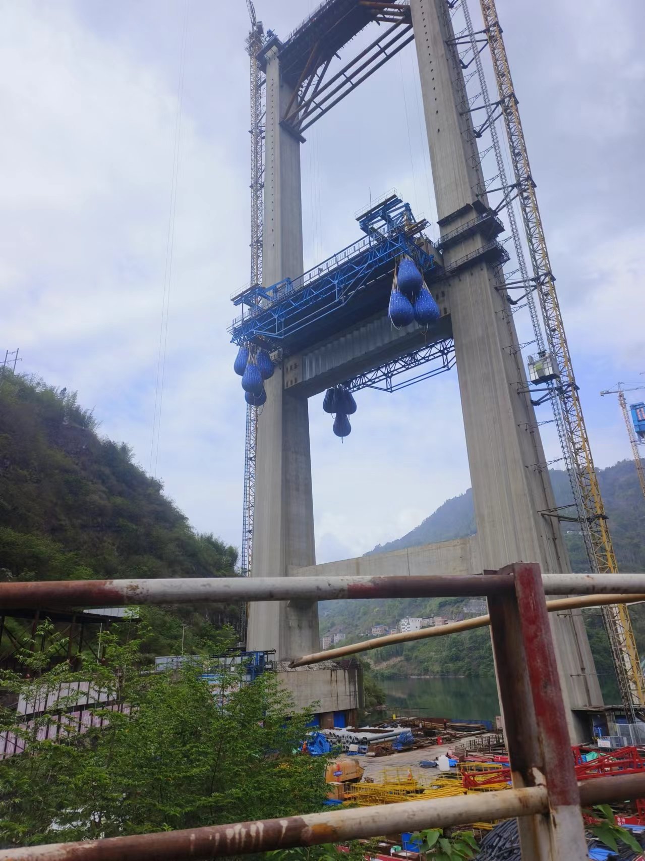 伴隨著機器的轟鳴聲,中都河特大橋新市岸預壓吊袋放水順利下放到位,此舉標志著中都河特大橋的施工取得了階段性的勝利,為后續(xù)施工創(chuàng)造了有利條件。中都河特大橋為148m+320+148m預應力砼斜拉橋,結構形式采用雙塔雙索面、預應力砼雙縱肋主梁,是G4216線屏山新市至金陽高速公路段的控制性工程之一。此次采用由武漢速安達團隊