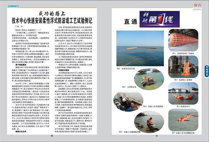 經(jīng)過(guò)60天的艱苦奮斗于2014年12月31順利完成了《柔性浮式快速防波堤》驗(yàn)收任務(wù),充分驗(yàn)證了材料、設(shè)計(jì)、制造、運(yùn)輸、安裝、收放各環(huán)節(jié),總結(jié)了豐富的經(jīng)驗(yàn)。 《柔性浮式快速防波堤》用于消除部分波浪,提高海洋作業(yè)窗口,廣泛運(yùn)用于海洋施工工程